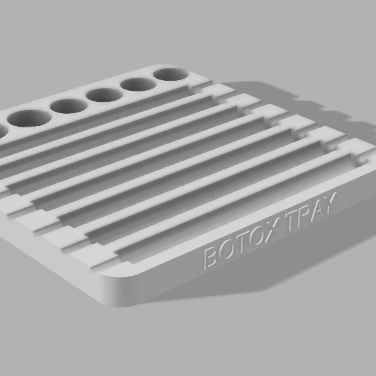 Designed and 3D printed to a customer’s specifications, this Botox tray provides a neat, organised way to hold both syringes and vials securely.