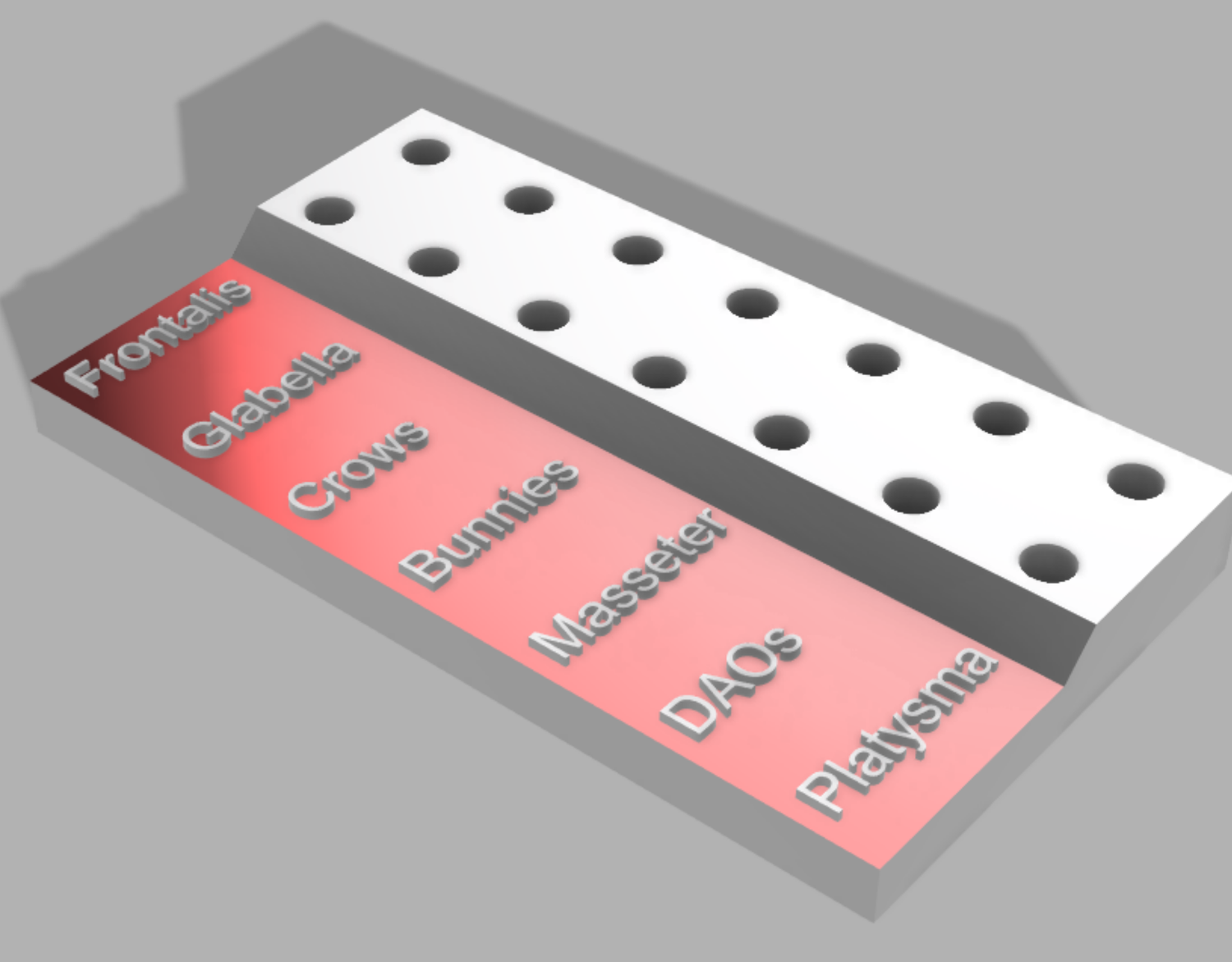 We’ve just completed a custom-designed Botox syringe holder for a client in the beauty industry. This sleek, 3D-printed organiser features seven clearly labelled areas — Frontalis, Glabella, Crows, Bunnies, Masseter, DAOs, and Platysma — keeping treatment zones tidy and easy to identify.
