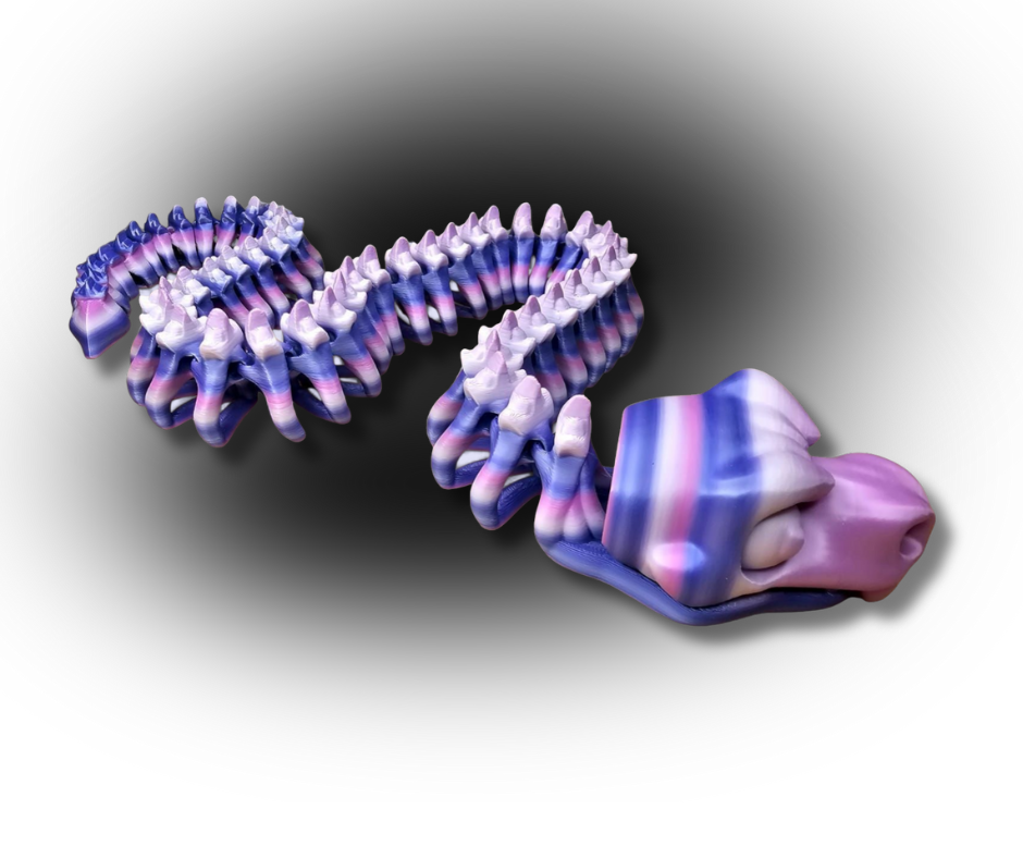 Made from high-quality PLA, this unique skeleton snake is ideal as a fidget toy, spooky decoration, or gift for reptile and dinosaur lovers. Whether coiled on a desk, draped across a shelf, or used as a quirky Halloween prop, this snake is sure to turn heads.
